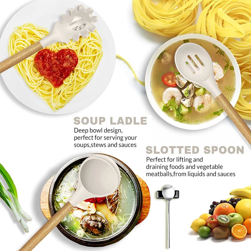 【About Health】: Our silicone utensils are all made of the highest quality materials. You can also use all the utensils with confidence. We promise that our kitchen tools are 100% healthy for you and your family's health.