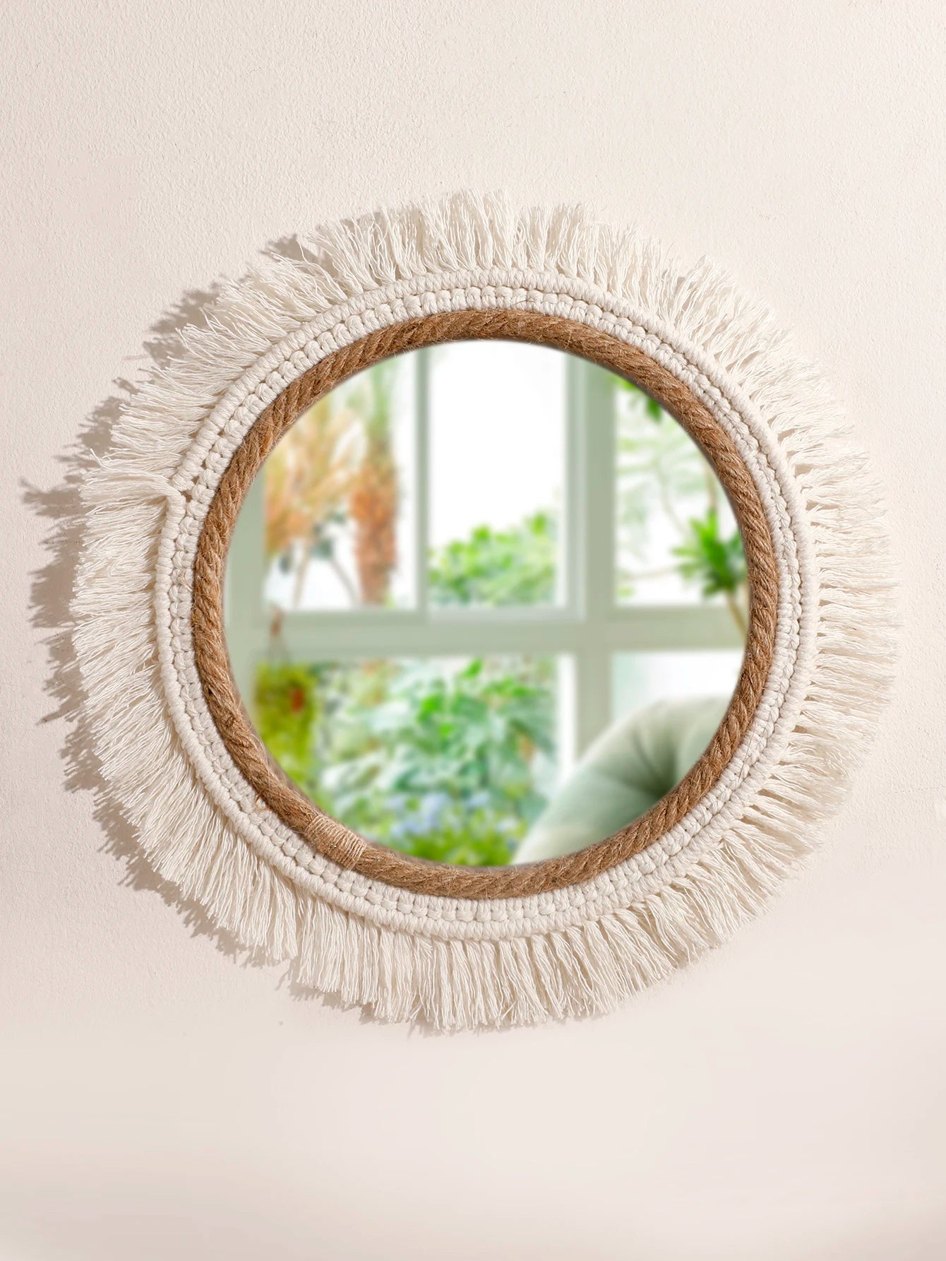 Boho Hand Woven Wall Hanging Tapestry Home Decorative Mirrors Nordic Wall Mirrors Decoration Bedroom Living Room Crafts Decor