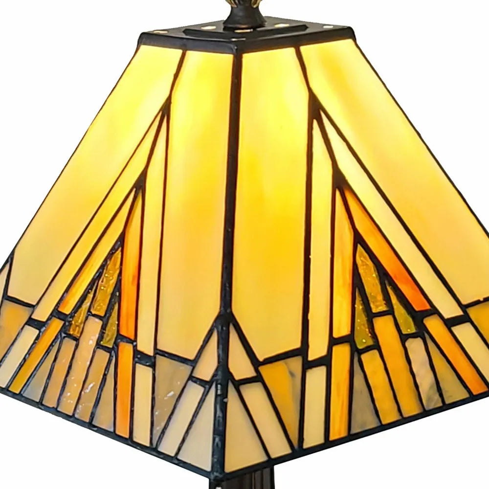 With this 15-inch dark brown metal candlestick table lamp with beige shade you can bring in design to any space along with adding some ambient lighting. The base of this lamp is made of metal finished in a dark brown tone. This standard table lamp is designed to provide general lighting to the area. High quality design makes this a great lamp for not only lighting, but accenting a room with style. The perfect lamp to create just the right natural and soothing light in your space. 15-inch H x 14-inch W x 9-inch D